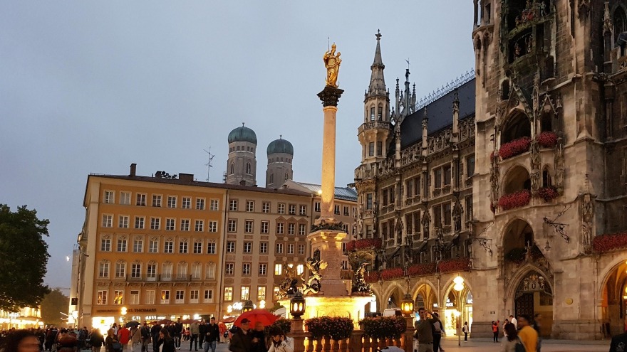 Hier kann man auch dem oft überschätzten Glockenspiel auf dem Marienplatz lauschen. Allein ist man beim Lauschen und Staunen allerdings nicht. Denn gerade im Hochsommer ist der Platz ein Hotspot. Der Menschenstrom ist ebenso beeindruckend, wie das Sprachgewirr. Neben Arabisch und Englisch und vor allem auch Italienisch – die Nähe zu den Alpen ist nicht nur unübersehbar, sondern auch unüberhörbar. Das Münchnerische fehlt dabei aber fast ein bisschen.